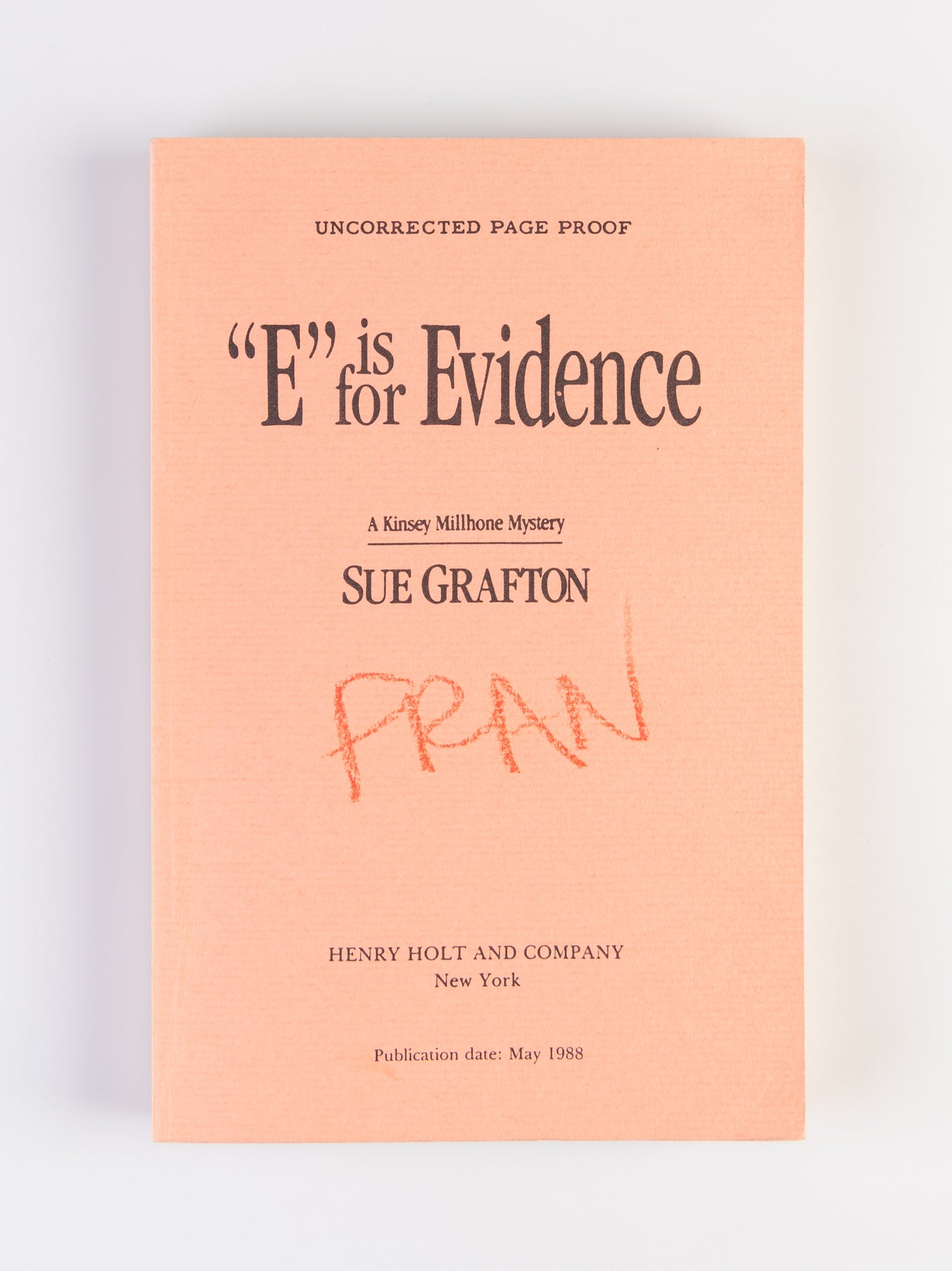 An uncorrected proof copy. 8vo. Original black and pink printed wrappers. New York, Henry Holt, 1988.